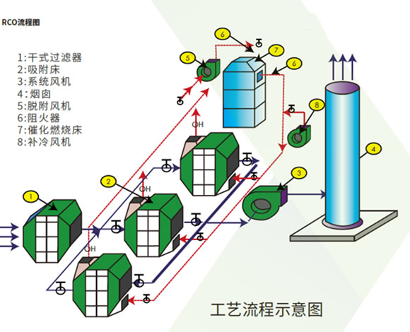 RCO催化燃燒設(shè)備是采用低溫氧化技術(shù),即在貴金屬催化劑作用下,將有機(jī)氣體加熱到分解溫度使氣體凈化。在高濃度低風(fēng)量廢氣環(huán)境下使用效果好。